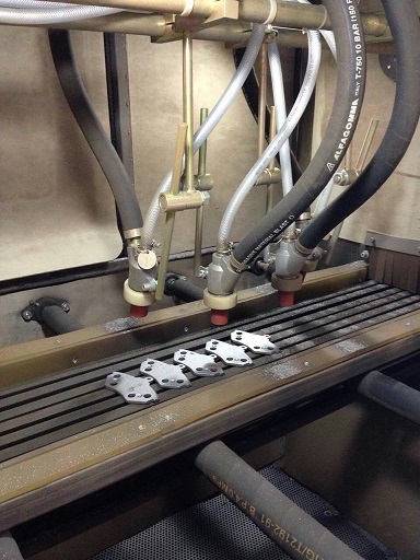 剎車片簡介 剎車片也叫剎車皮。在汽車的剎車系統(tǒng)中,剎車片是最關(guān)鍵的安全零件,所有剎車效果的好壞都是剎車片起決定性作用,所以說好的剎車片是人和汽車的保護(hù)神,剎車片一般由鋼板、粘接隔熱層和摩擦塊構(gòu)成,鋼板要經(jīng)過涂裝來防銹,那么剎車片生產(chǎn)過程中粘結(jié)過程中,噴砂、拋丸是一道非常重要的工藝,經(jīng)過噴砂、拋丸的剎車片、可以使粘結(jié)更加牢固、更加穩(wěn)定。 吉川科技針對剎車生產(chǎn)的工藝要求,研發(fā)設(shè)計(jì)出一款剎車片專用噴砂機(jī),噴砂效率高,噴砂質(zhì)量穩(wěn)定,環(huán)保無污染等